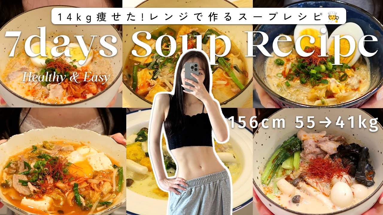 【1週間ダイエットレシピ】満腹食べて-14kg痩せた🙆‍♀️レンジで作れるスープレシピ7選🍽️【時短レシピ】7Days Soup Recipes for